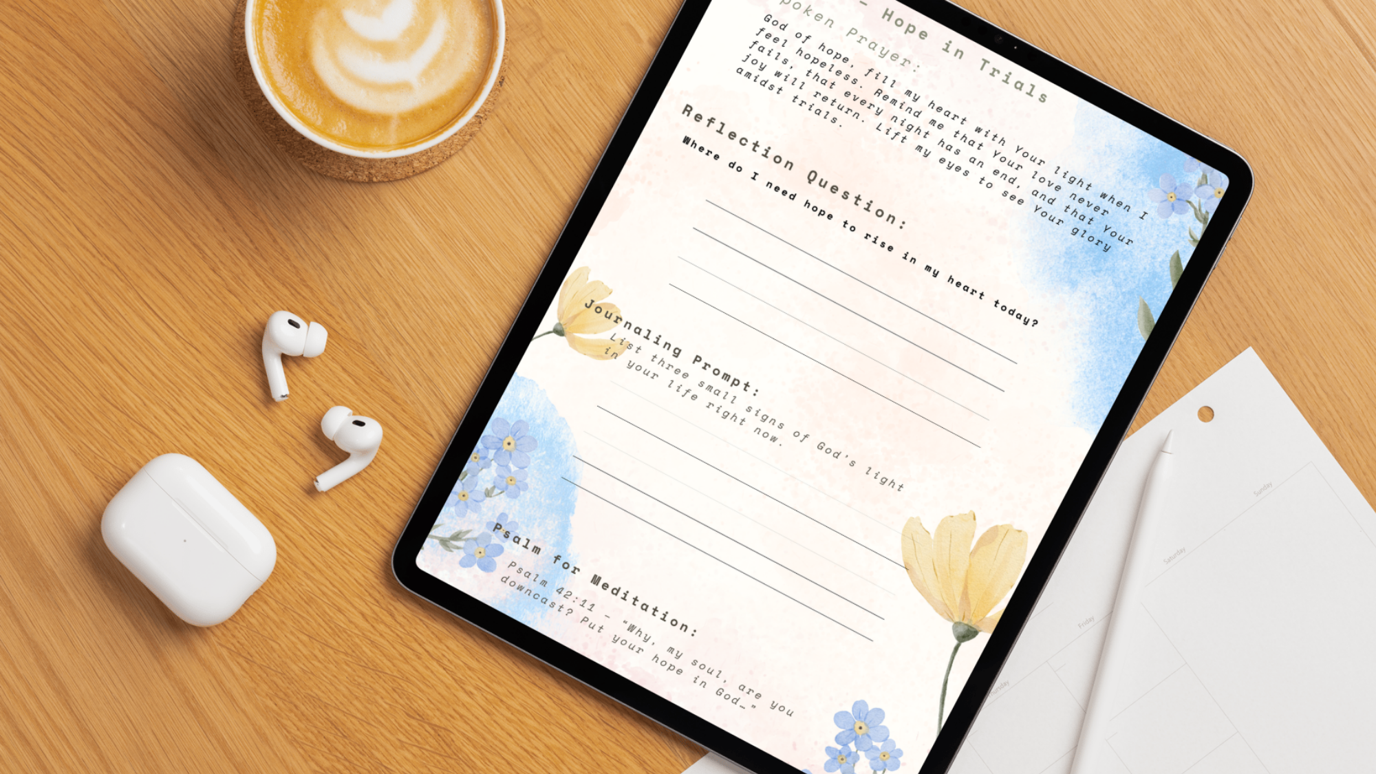 • A unique journaling prompt to express your thoughts, emotions, or prayers